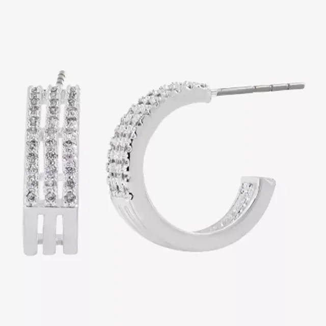 Sparkle Allure Cubic Zirconia Pure Silver Over Brass 11mm Hoop Earrings