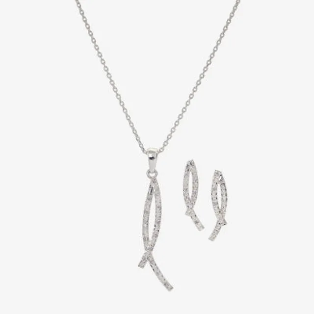 Sparkle Allure Womens Cubic Zirconia Pure Silver Over Brass Cross 2-pc. Jewelry Set