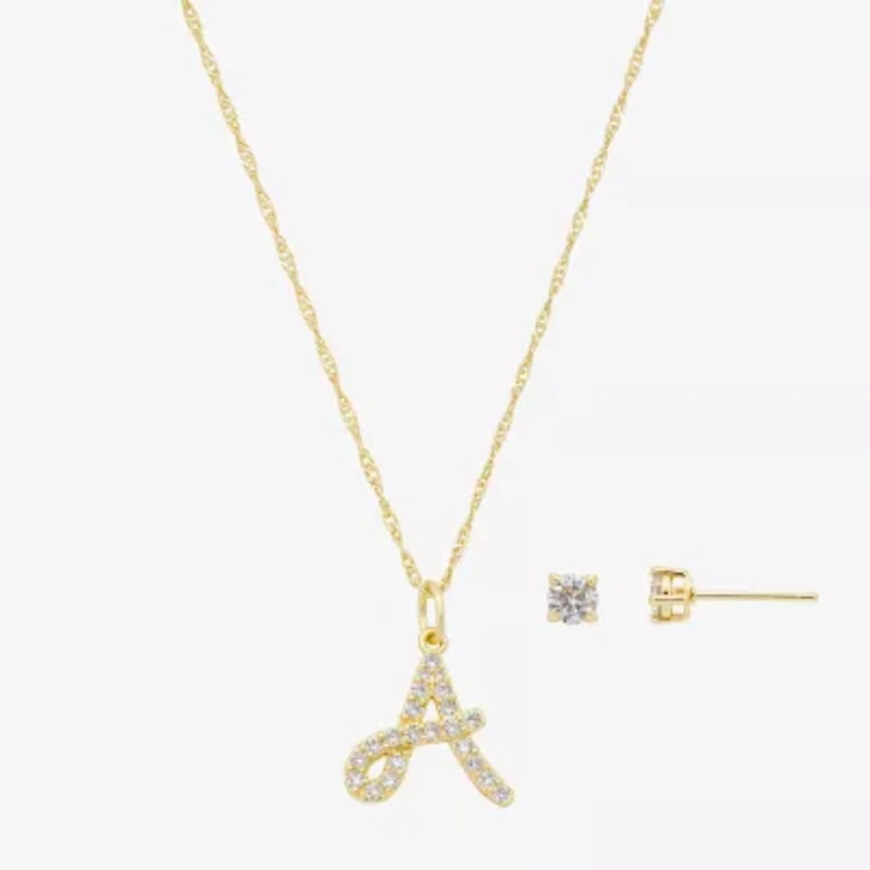 Sparkle Allure Initial Womens Cubic Zirconia 14K Gold Over Brass Round 2-pc. Jewelry Set