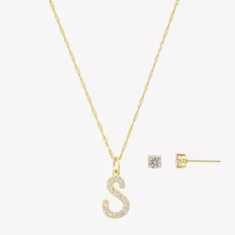 Sparkle Allure Initial Womens Cubic Zirconia 14K Gold Over Brass Round 2-pc. Jewelry Set