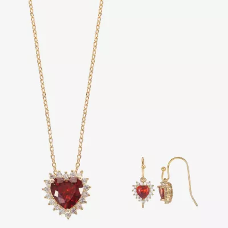 Sparkle Allure Light Up Box Halo Womens Red Cubic Zirconia 14K Gold Over Brass Heart 2-pc. Jewelry Set