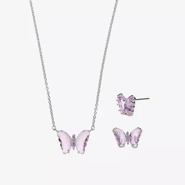 Sparkle Allure Light Up Box Womens Cubic Zirconia Pure Silver Over Brass Butterfly 2-pc. Jewelry Set