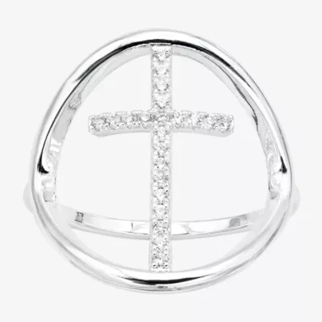 Sparkle Allure Open Womens Cubic Zirconia Pure Silver Over Brass Cross Cocktail Ring