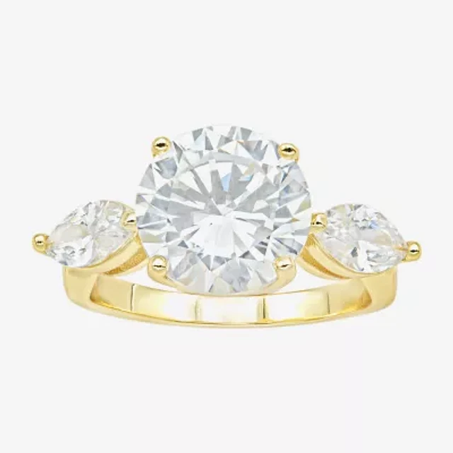 Sparkle Allure Side Stone Womens Cubic Zirconia 14K Gold Over Brass Round Engagement Ring