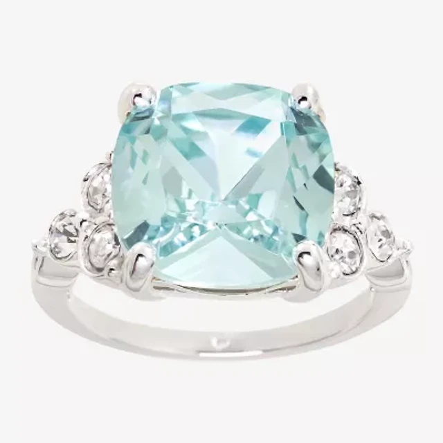 Sparkle Allure Womens Blue Crystal Pure Silver Over Brass Engagement Ring