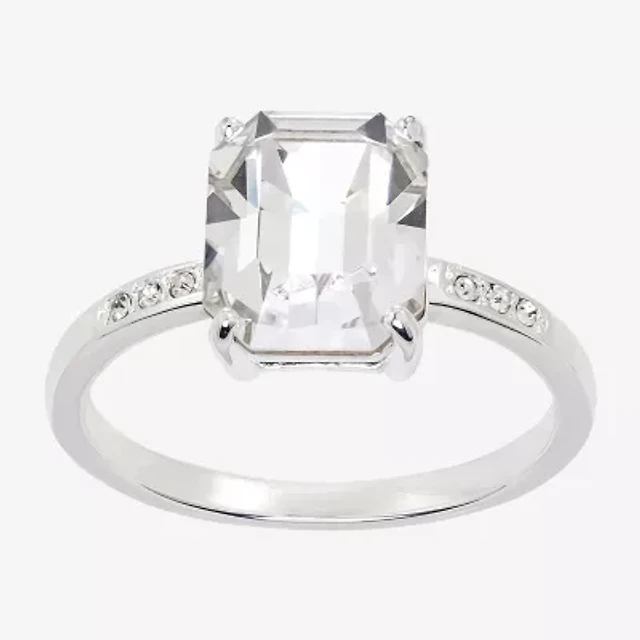 Sparkle Allure Womens Crystal Pure Silver Over Brass Rectangular Cocktail Ring