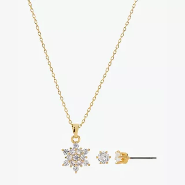 Sparkle Allure Womens Cubic Zirconia 14K Gold Over Brass Flower 2-pc. Jewelry Set