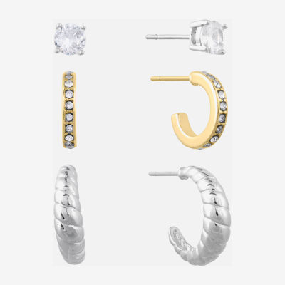 Sparkle Allure Womens Crystal 3 Pair Earring Set
