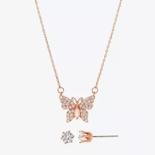 Sparkle Allure Womens Pink Cubic Zirconia 18K Rose Gold Over Brass Butterfly 2-pc. Jewelry Set