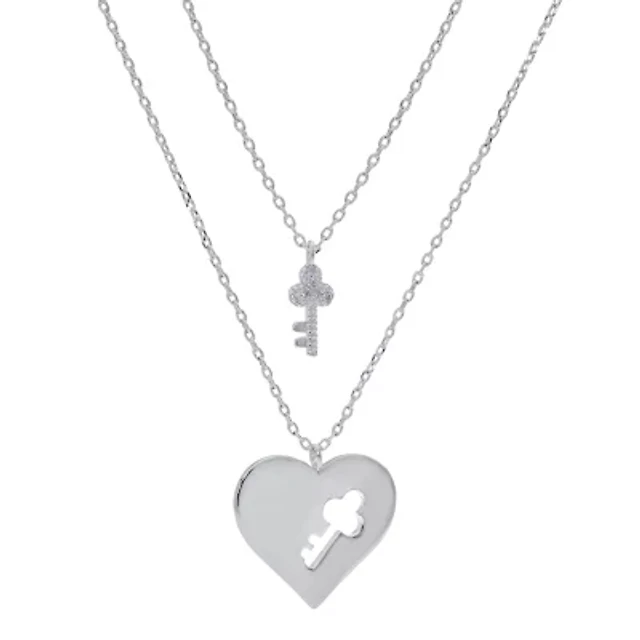 Sparkle Allure You & Me Womens Cubic Zirconia Heart 2-pc. Necklace Set