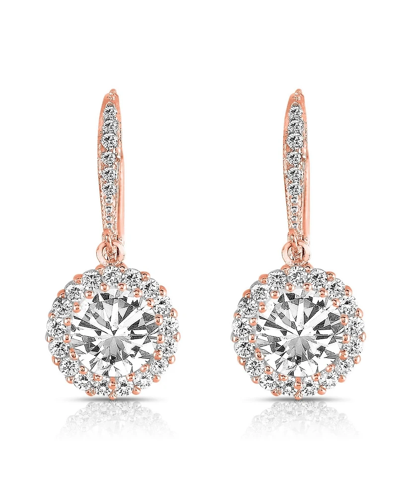 Sparkling Halo Circle Drop Earrings in Sterling Silver with Cubic Zirconia in Ponce, PR