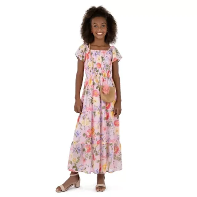 Speechless Big Kid Girls Short Sleeve Flutter Sleeve Floral Maxi Dress