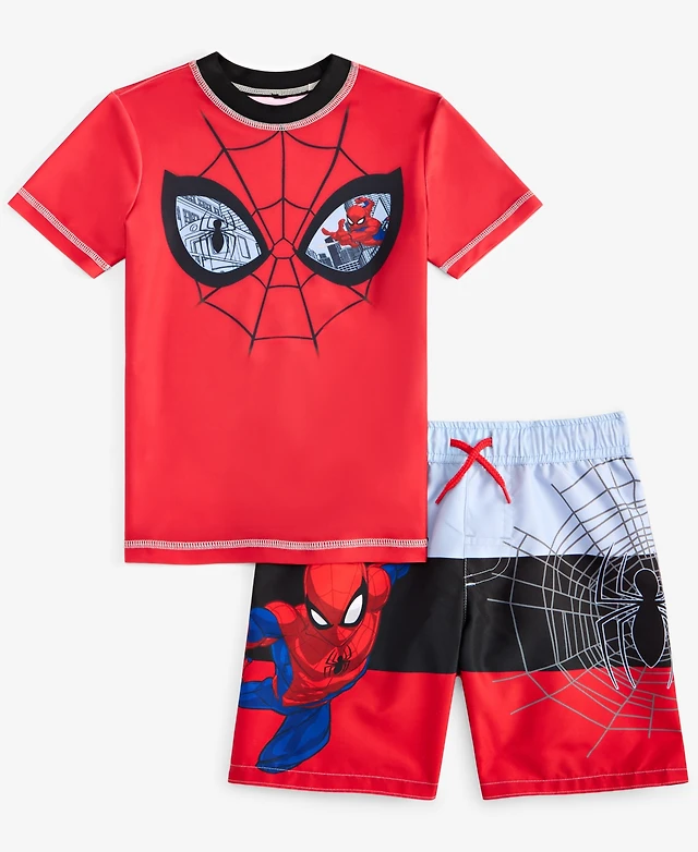 Spider-Man Little Boys Rash Guard & Swim Trunks Swimsuit, 2 Piece Set