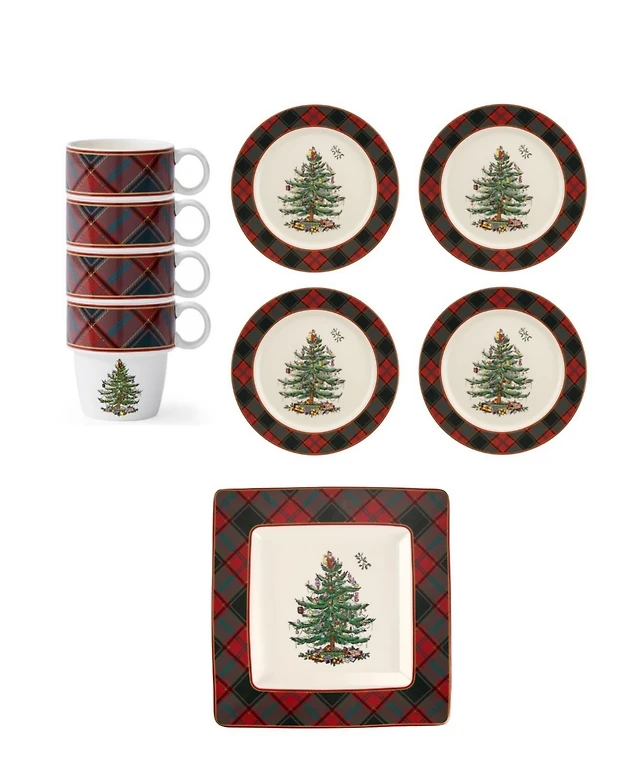 Spode Christmas Tree Tartan 9-Piece Hot Chocolate Set
