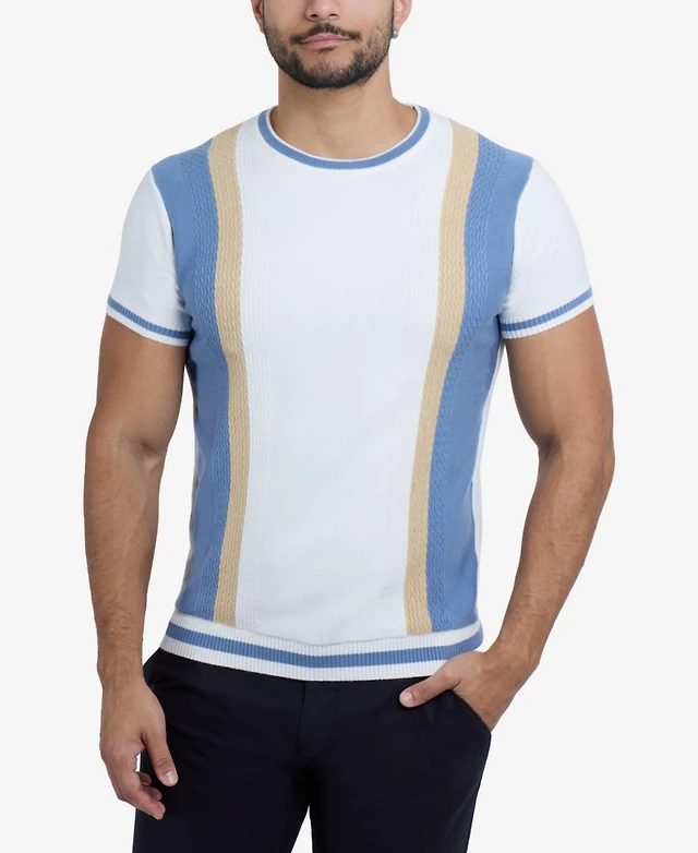 Spring + Mercer Men's Stripe Short Sleeve Sweater Polo Shirt