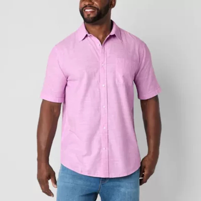 St. John's Bay Chambray Mens Easy-on + Easy-off Short Sleeve Classic Fit Big and Tall Button-Down Shirt