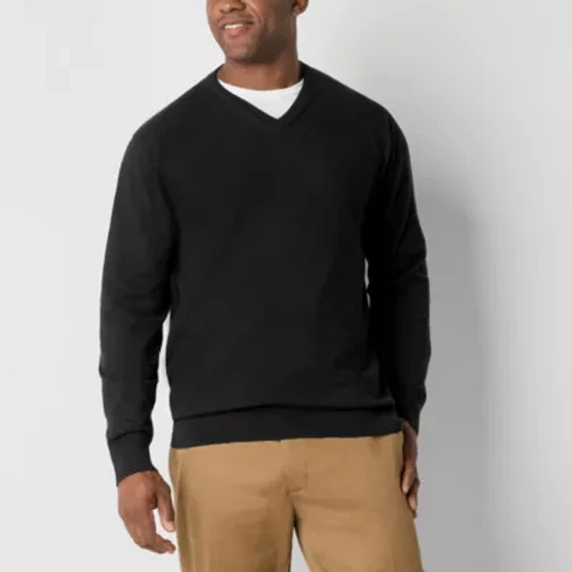 St. John's Bay Fine Gauge Mens V Neck Long Sleeve Pullover Sweater