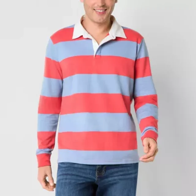 St. John's Bay Frech Terry Rugby Mens Classic Fit Long Sleeve Polo Shirt