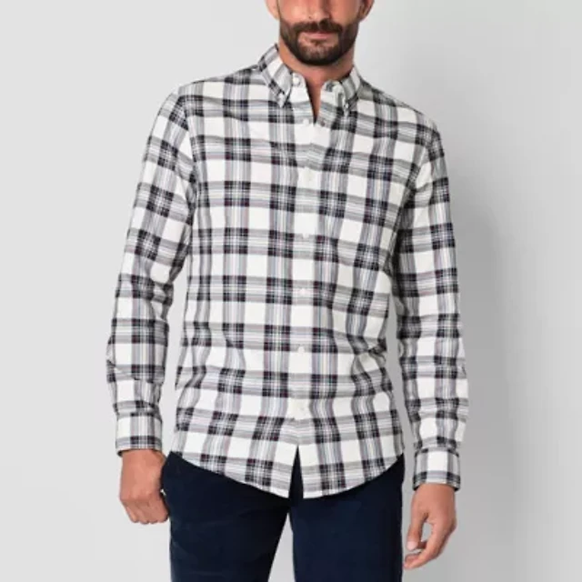 St. John's Bay Double Cloth Mens Long Sleeve Classic Fit Button-Down Shirt