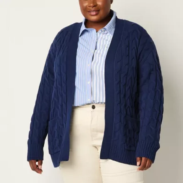 St. John's Bay Plus Womens Long Sleeve Open Front Cardigan