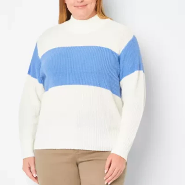 St. John's Bay Plus Womens Mock Neck Long Sleeve Striped Pullover Sweater