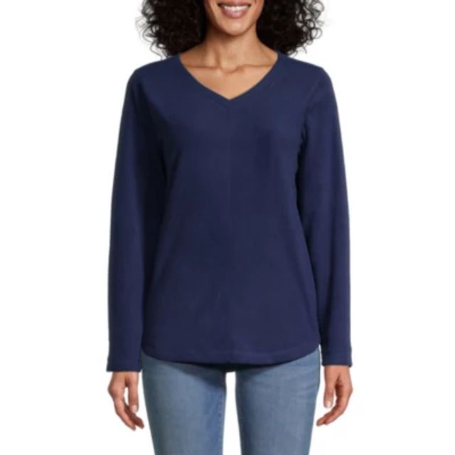 St. John's Bay Polar Fleece Womens V Neck Long Sleeve Sweatshirt