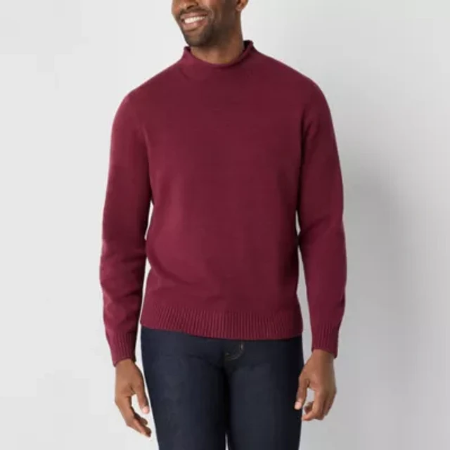 St. John's Bay Roll Neck Mens Mock Neck Long Sleeve Pullover Sweater