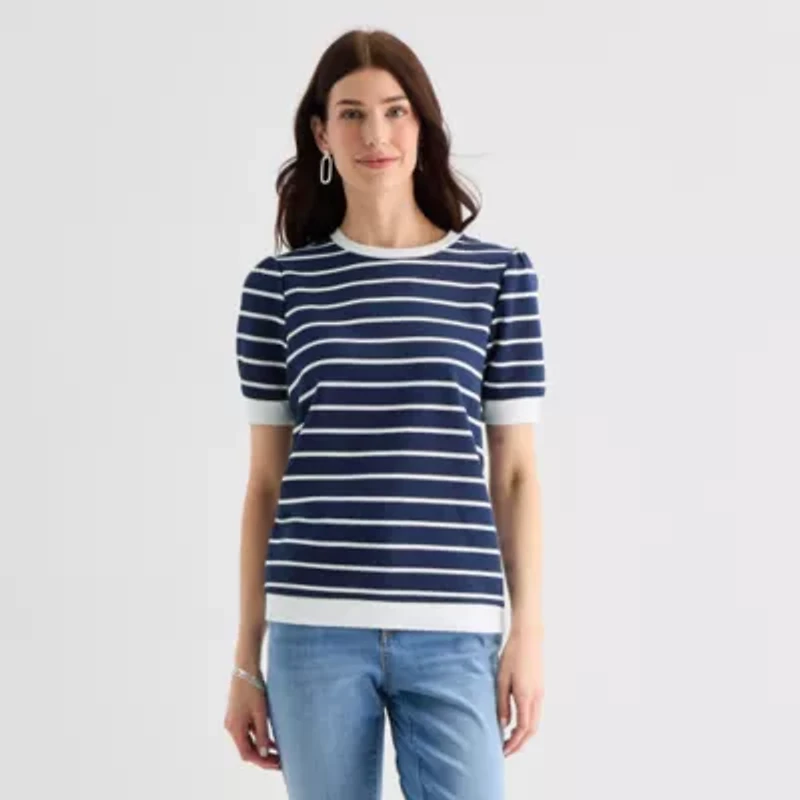 St. John's Bay Womens Crew Neck Short Sleeve Sweatshirt
