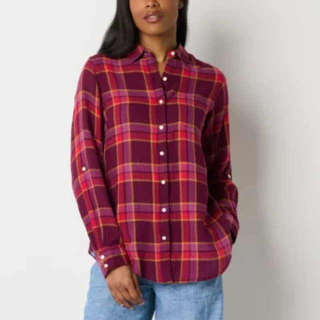 St. John's Bay Womens Cuffed Long Sleeve Regular Fit Button-Down Shirt