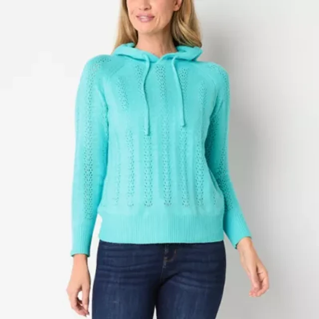 St. John's Bay Womens Hooded Long Sleeve Pullover Sweater
