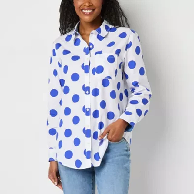 St. John's Bay Womens Long Sleeve Cuffed Oversized Button-Down Shirt