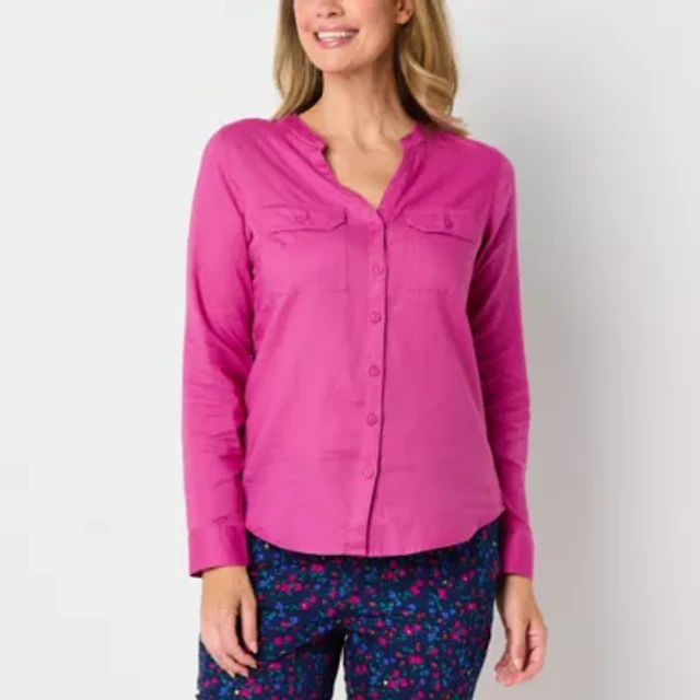 St. John's Bay Womens Long Sleeve Cuffed Sleeve Regular Fit Button-Down Shirt