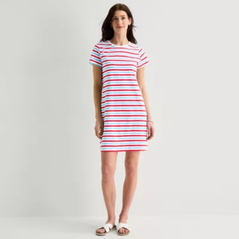 St. John's Bay Womens Petite Short Sleeve Striped T-Shirt Dress