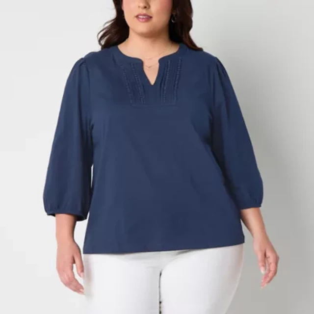 St. John's Bay Womens Plus Split Crew Neck 3/4 Sleeve Blouse