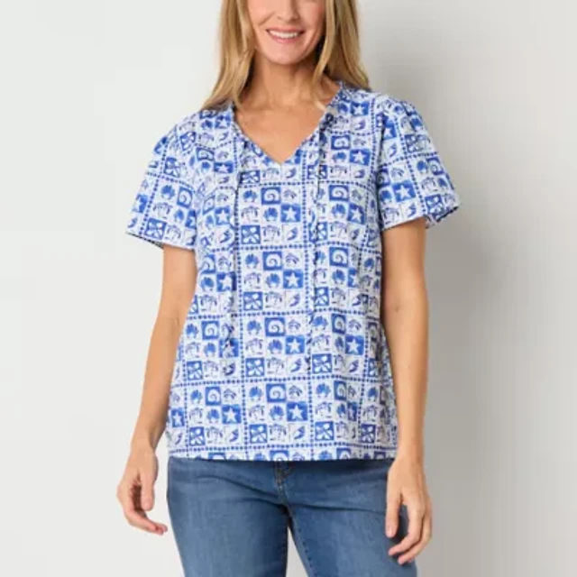 St. John's Bay Womens Split Crew Neck Short Sleeve Blouse