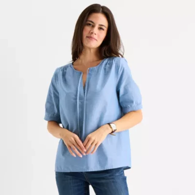 St. John's Bay Womens Split Crew Neck Short Sleeve Blouse