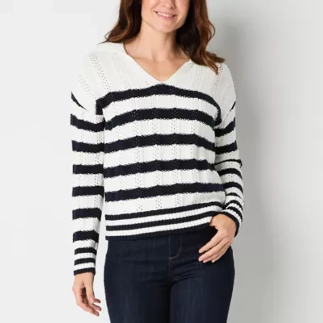 St. John's Bay Womens V Neck Long Sleeve Pullover Sweater