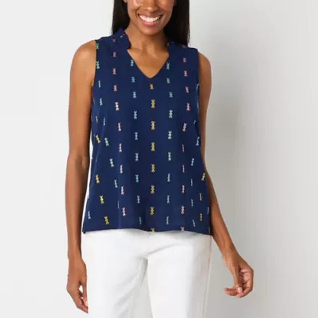 St. John's Bay Womens V Neck Sleeveless Blouse