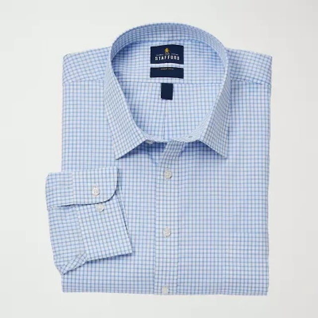 Stafford Premium Mens Regular Fit Stretch Fabric Wrinkle Free Long Sleeve Dress Shirt