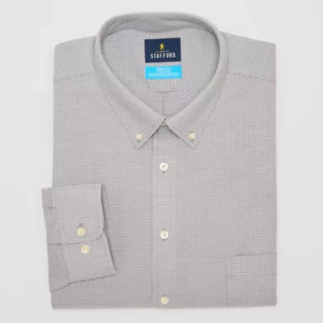 Stafford Coolmax All Season Oxford Mens Big & Tall Regular Fit Long Sleeve Houndstooth Dress Shirt