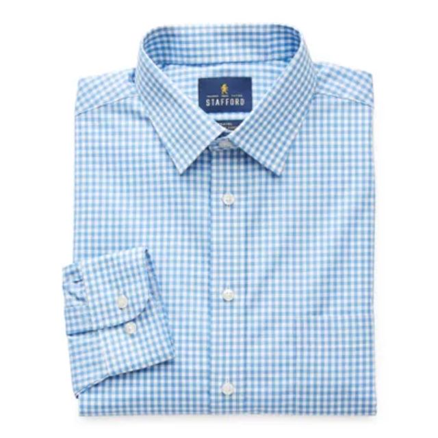 Stafford Premium Mens Regular Fit Stretch Fabric Wrinkle Free Long Sleeve Dress Shirt