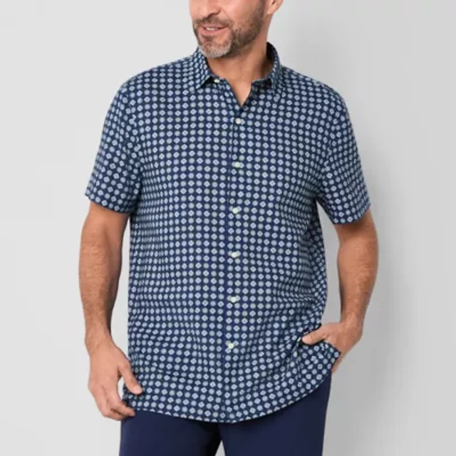 Stafford Linen Blend Mens Short Sleeve Regular Fit Button-Down Shirt