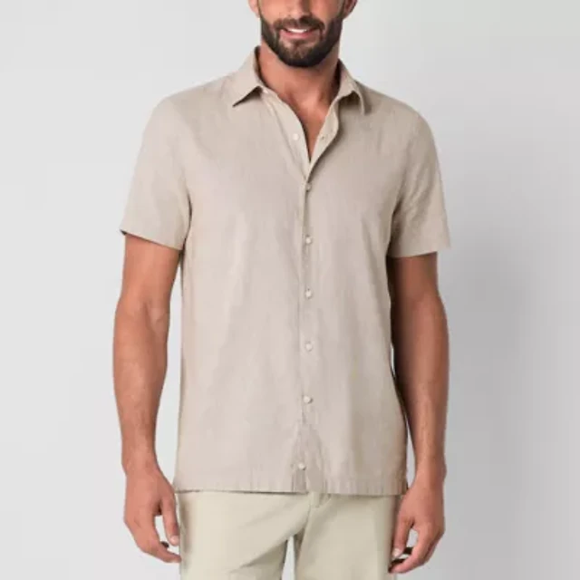 Stafford Linen Blend Mens Short Sleeve Regular Fit Button-Down Shirt