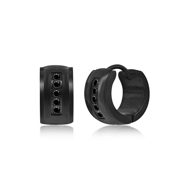 Metallo Stainless Steel, Ip Black Plated Cz Designed Huggie Hoop Earrings