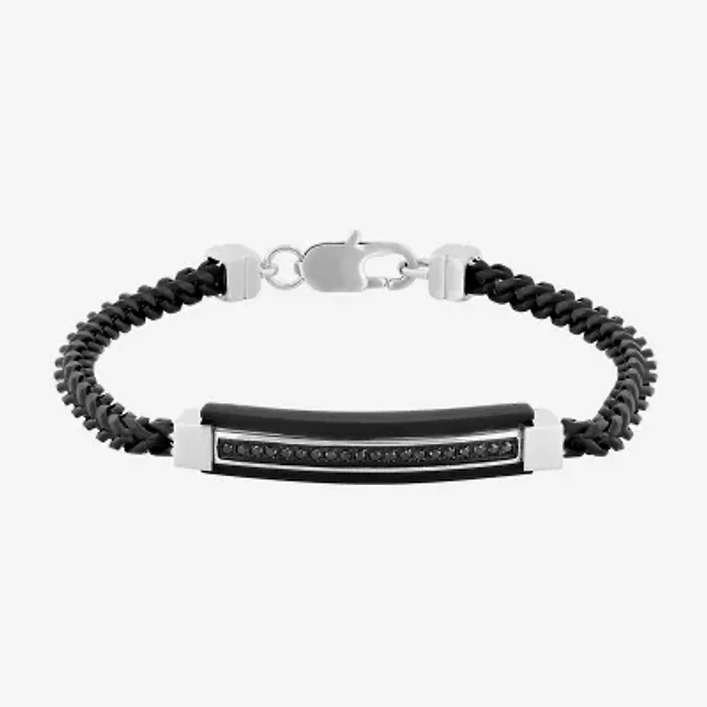 Stainless Steel 1/5 CT. T.W. Natural White Diamond 8 1/2 Inch Solid Link Id Bracelet