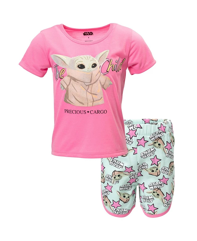 Star Wars The Mandalorian Child Girls French Terry T-Shirt and Shorts Outfit Set Toddler|Child