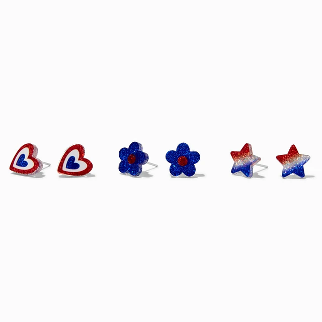 Stars & Stripes Acrylic Icons Stud Earrings - 3 Pack