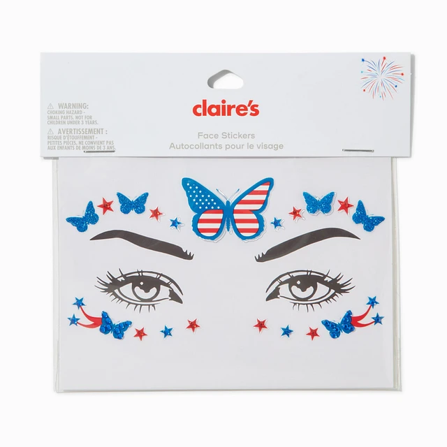 Stars & Stripes Butterfly Gemstones Face Stickers
