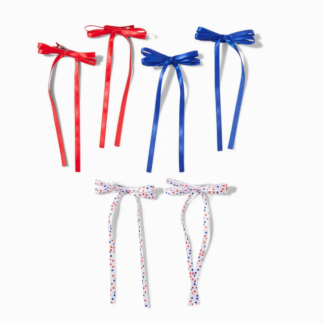 Stars & Stripes Long Tail Hair Bow Clips - 6 Pack