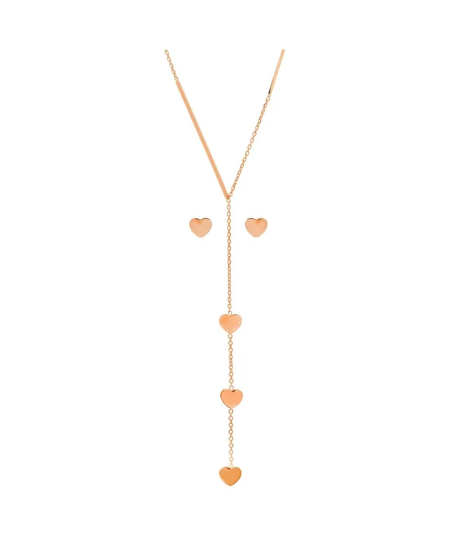 Steeltime Ladies 18K Rose Gold Plated Stainless Steel Heart Design Drop Necklace Set, 2 Piece